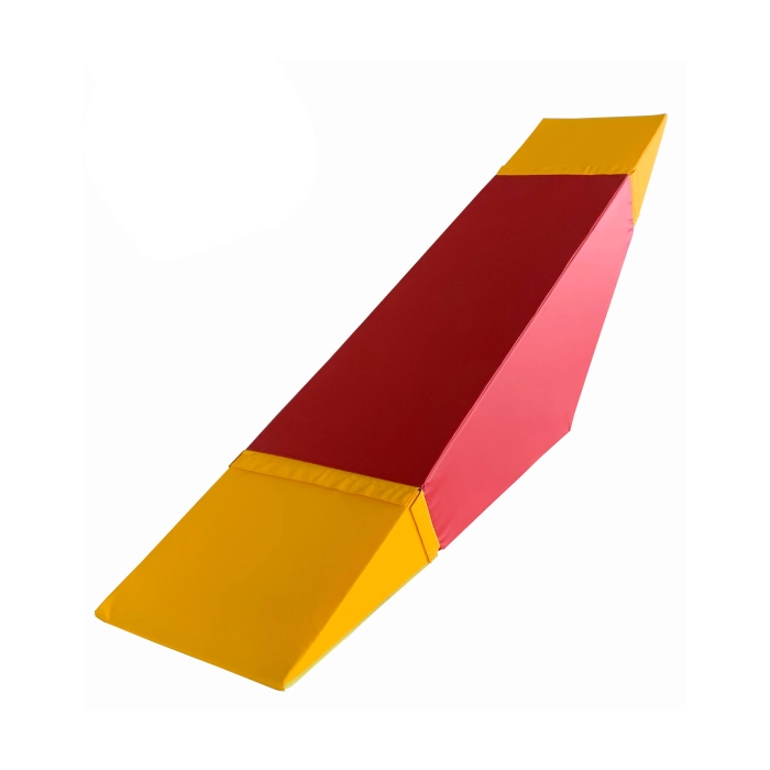 Dizajn má 3D klinový tvar. Je to ako farebné stavebné kocky. Bloky sú naskladané na seba. Hlavné farby sú červená a žltá. Tieto farby sú svetlé. Deti milujú svetlé farby. Tvar je zábavný. V deťoch to núti hrať sa. Okraje sú všetky mäkké. Nie sú tam žiadne tvrdé časti. Tým sa zabráni zraneniam. Vzhľad je moderný a roztomilý.